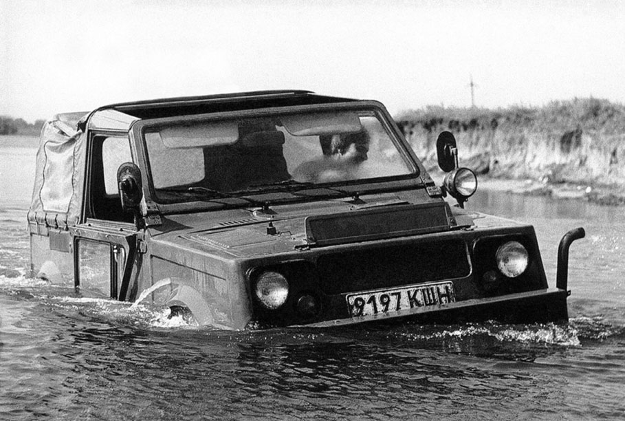 [16] Опасений насчёт герметичности дверей тоже было немало (даже всерьёз предлагался бездверный вариант с посадкой через борт – как на амфибии ГАЗ-46). Но и тут всё оказалось как нельзя лучше – нижнюю часть двери, находящуюся ниже ватерлинии, давлением воды крепко прижимало к уплотнителю (гораздо сильнее, чем на суше).