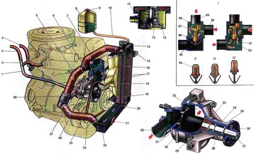 цилиндров слева по ходу движения автомобиля. К системе охлаждения подключен отопитель салона