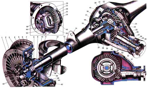 главную передачу, дифференциал и полуоси. Эти механизмы установлены в заднем